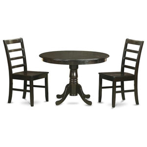 East west furniture oxford 3 piece dining table set with 2 wood seat dining chairs. This circular pedestal table is just the thing to place in your kitchen nook, corner bar area, or even outside on a balcony or patio. And as we've already made sure each set is perfectly coordinated, you won't have to spend time looking for matching dining tables or dining chairs. Generally speaking, round tables take up less physical space than square and rectangular tables, making them one of our favorite tricks to elevate your small space. This quaint dining set includes table and 2 chairs.